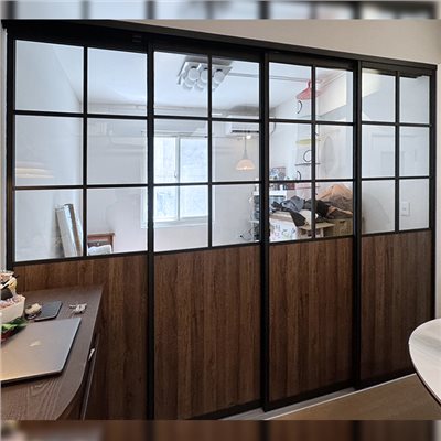 地軌式黑框緩衝對開拉門/拉門(清玻/噴砂)WL189
